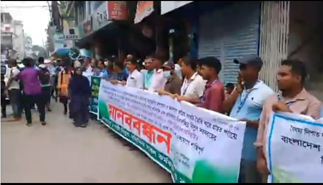 পাবনা জেলা প্রতিনিধি :অভিন্ন চাকুরীবিধি বাস্তবায়ন ও অনিয়মিতদের চাকুরী নিয়মিতকরণের দাবিতে মানববন্ধন